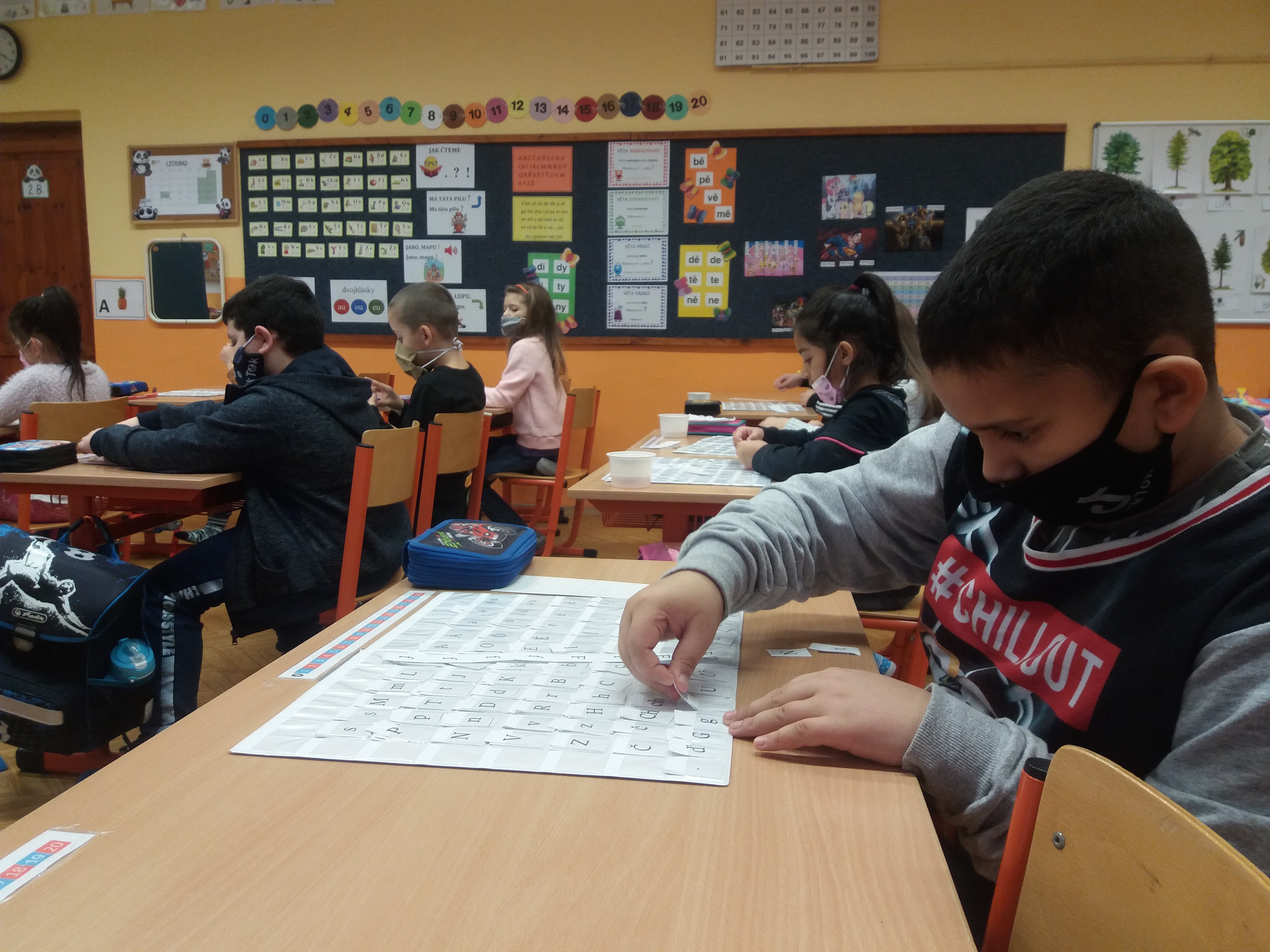 „Jak jste se kdo měl? A co vás doma bavilo,“ ptá se na úvod učitelka Iva Mikulková své třídy 2.B, na tváři roušku, stejně jako všechny přítomné děti. „Mohli jsme chodit hodně ven,“ ozývá se jeden hlas. „A víc si hrát na mobilu,“ přidává se další. Na dotaz, co dětem doma naopak chybělo, však odpovídají jednohlasně: „Kamarádi.“ A ještě než hodina začne, děti se sesednou do kruhu a popřejí k narozeninám Matýskovi, který měl během pauzy osmé narozeniny. „Dostal jsem psa,“ říká pyšně školák a učitelka ho vybízí, aby jeho fotku poslal ostatním přes internet.