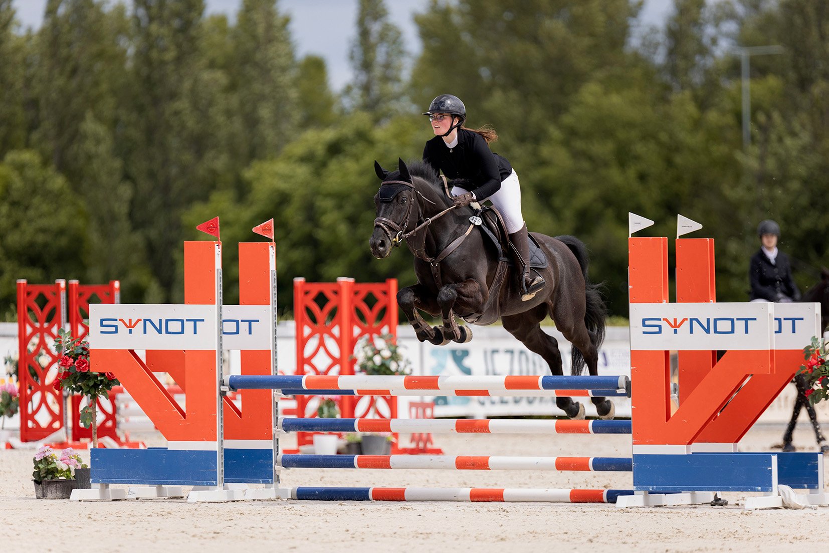 V sedm ráno zazvonil budík a za 15 minut jsme byly připravené vyrazit. Auto bylo plné výbavy pro jezdce i koně a mířily jsme na závodiště do Chuchle. Dorazily jsme včas, takže si Pepi mohla v klidu projít parkur. I kůň – jménem Impression, ale přezdívaný Bubák – přijel včas. Toho dovezla majitelka z opačného konce Prahy, kde je ustájený. Během chvilky ho Pepi připravila a šly se rozjezdit na kolbiště. Mezitím dorazily obě babičky i děda. Nervozita na nich byla znatelná – Bubákův příběh znali a o Pepi měli strach.