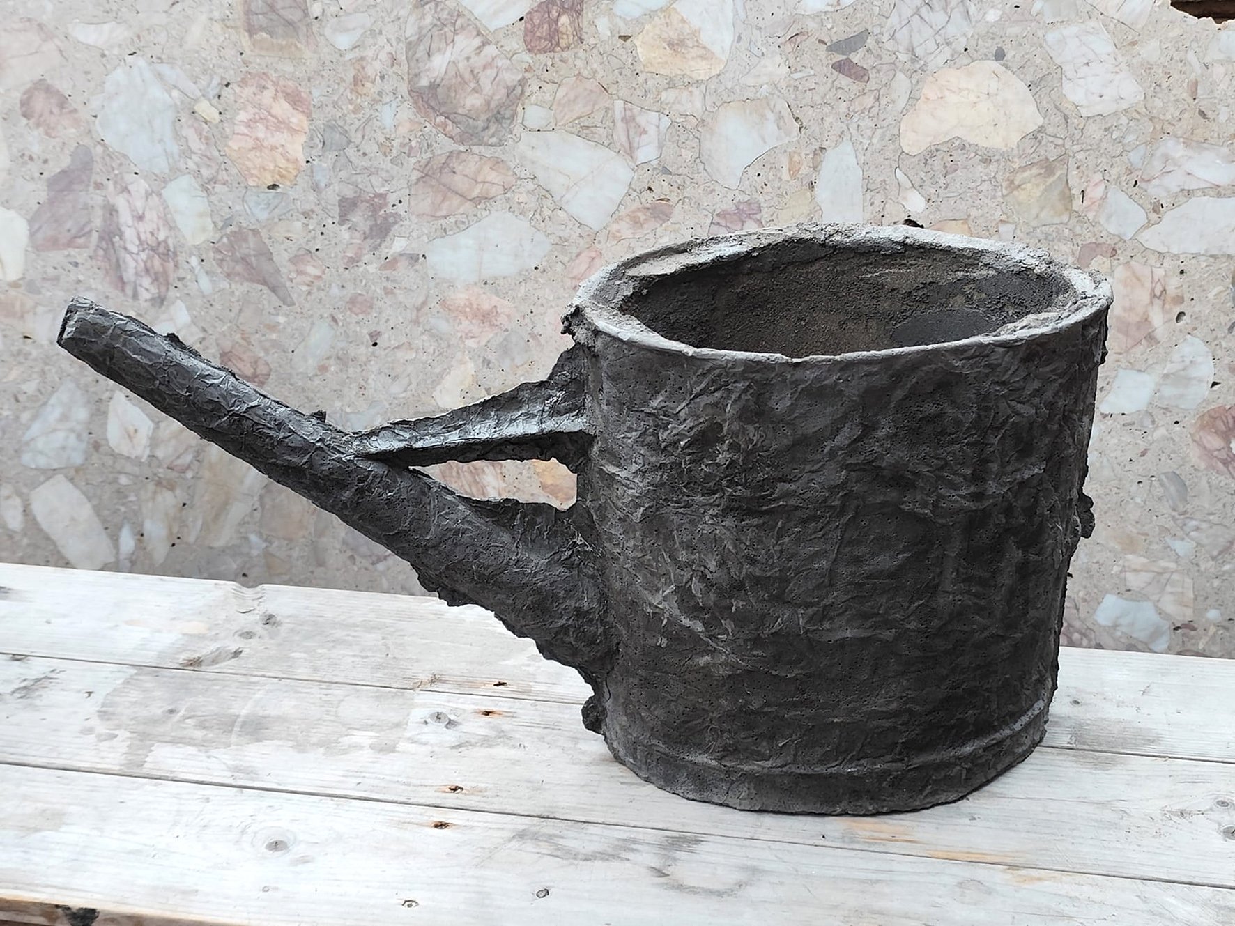 Matouš Lipus (39) na AVU působí jako odborný asistent v sochařském ateliéru Vojtěcha Míči a loni se na škole zasloužil o napájení místní zahrady uměle sváděnou dešťovou vodou. Na UMPRUM zase už skoro deset let pečuje o permakulturní zahradu okolo externího ateliéru na Ořechovce přezdívaného Kafkárna. Zatímco jeho ekologické intervence jsou vesměs dočasného charakteru, umělecká díla naopak vytváří na předlouhé časy, neboť je odlévá do betonu. Ať už se jedná o zahradní konev, pracovní boty, kanystr, bednu na ovoce, proutěný košík nebo uříznutou větev stromu, jde o zdánlivě banální předměty, které přenesení do jiného materiálu posunuje do prazvláštní dimenze, kde platí jiná pravidla. Je to svět, kde může na starých sáňkách balancovat lidská postava měnící se od chodidel směrem vzhůru ve strom s rozpraskanou kůrou. A kde může také socha najednou nečekaně vyklíčit, protože řadu z nich Lipus naplnil hlínou a zasadil do nich sazenice.