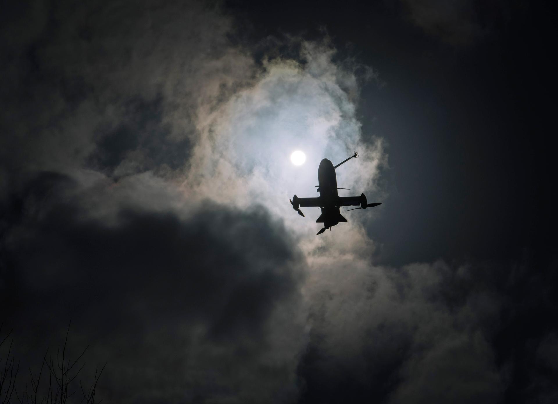 Na poli, asi hodinu cesty od Kyjeva, stojí kolem kempingového stolu skupina mladých mužů. Na obrazovce sledují záběry z kamery dronu. Ten leží v trávě o pár metrů dál, je dlouhý asi jako předloktí a má tvar rakety. Do jeho přední části, která je namířená k obloze, lze namontovat výbušninu, na trupu má křídla pro stabilizaci. Název stíhacího dronu je Sting, česky „žihadlo“.